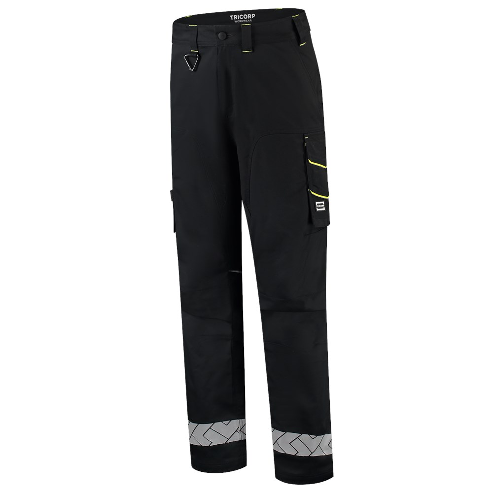 De Werkbroek Functional Stretch Reflective Redefined van Tricorp is jouw antwoord op werkcomfort, zichtbaarheid én duurzaamheid. Gemaakt van een stevige maar flexibele materiaalmix van 58% gerecycled polyester, 40% biologisch katoen en 2% elastaan, met een doekgewicht van 250 g/m2, biedt deze broek niet alleen een duurzame keuze, maar ook maximale bewegingsvrijheid. Dankzij strategisch geplaatste 4-way stretch panelen van 90% polyamide en 10% elastaan in het kruis en de knieholtes beweegt deze werkbroek soepel met je mee. Ook het verhoogde achterpand is ondersteund met 4-way stretch panelen, zodat de broek altijd perfect aansluit. De combinatie van 2-way stretch twill en ventilerende zones in de knieholtes zorgt voor optimaal comfort tijdens fysiek zwaar werk. Dankzij slimme details zoals een duimstokzak, smartphonezak met klep, dijbeenzak met volumeplooi én Cordura® verstevigingen op slijtgevoelige plekken, is deze werkbroek gemaakt voor actie. De verbeterde pasvorm en stevige ritssluiting zorgen ervoor dat je altijd klaar bent voor je klus. De broek is voorzien van afneembare D-ring en praktische riemlussen en is verkrijgbaar in 3 verschillende lengtematen. Daarnaast zorgen de gesegmenteerde reflectie rondom de pijpen en reflectie elementen aan de achterzijde voor nachtzichtbaarheid medium risk, conform EN 17353, waarbij deze normering behouden blijft tot wel 50 wasbeurten van 60 graden. Kortom, met deze werkbroek ben je niet alleen overdag, maar ook in het donker goed zichtbaar! Bovendien draag je met trots een broek die is gemaakt van gerecycled polyester en biologisch katoen, voorzien van zowel het OCS en GRS-label als het OEKO-TEX® Standard 100-certificaat. Dat betekent: veilig op de huid én aantoonbaar duurzaam geproduceerd. De Werkbroek Functional Stretch Reflective Redefined is leverbaar in 3 verschillende lengtematen 42-66, 45-59 en 22-29 en de kleuren Black-Fluor Yellow en Ink-Fluor Yellow. Combineer deze broek met andere items uit de Reflective Redefined-lijn voor een complete, professionele en duurzame werkoutfit.