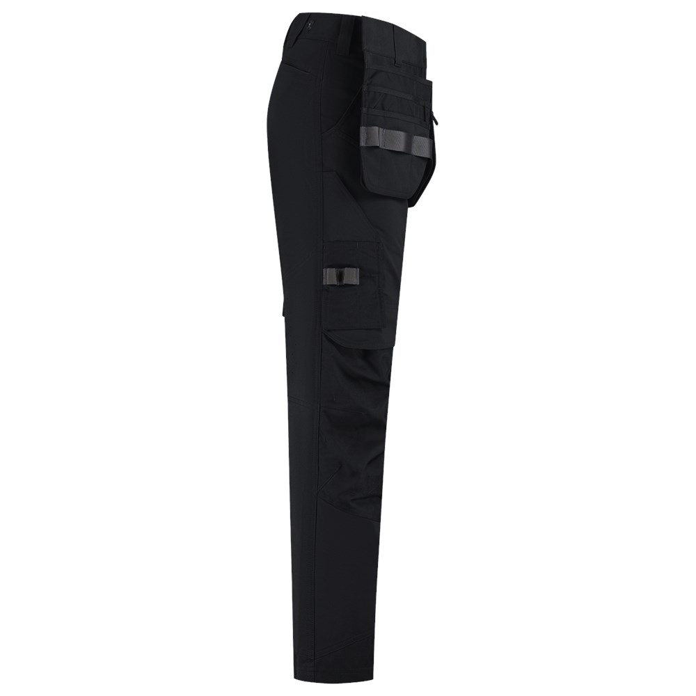 De Werkbroek 4-Way Stretch Redefined Tool Pockets van Tricorp is de perfecte keuze voor professionals die geen concessies willen doen aan comfort, duurzaamheid of functionaliteit. Deze broek is vervaardigd uit 82% elastomultiester en 18% gerecycled polyester, met een doekgewicht van 250 g/m², en biedt een ongeëvenaarde 2-way stretch voor maximale bewegingsvrijheid, zelfs in de meest veeleisende omstandigheden. De combinatie van 4-way stretch, de waterafstotende finish en ventilerende zones in de knieholtes garandeert bovendien optimaal comfort tijdens zwaar fysiek werk. De Werkbroek 4-way Stretch Redefined Tool Pockets is voorzien van slimme, goed doordachte details zoals Cordura® verstevigingen op kwetsbare plekken, een praktische dijbeenzak met volumeplooi, duimstokzak, smartphonezak met klep en stevige achterzakken. Alles zit precies daar waar je het nodig hebt, zodat je efficiënt kunt blijven werken. Met de afneembare D-ring en sterke riemlussen is ook aan gereedschap en accessoires gedacht. Tevens zijn de slijtvaste Cordura® kniezakken, die in hoogte verstelbaar zijn, ideaal voor iedereen die regelmatig op z’n knieën werkt. Daarnaast zijn de afneembare en verstelbare toolpockets met slimme zakindeling perfect voor het opbergen van gereedschap, schroeven of je smartphone. Eén van de toolpockets is zelfs afsluitbaar met een rits, zodat je waardevolle spullen veilig opgeborgen blijven. De toolpockets kun je zowel aan de voorzijde als aan de zijkant van de broek bevestigen, afhankelijk van je voorkeur en werkzaamheden. Deze werkbroek is leverbaar in 3 verschillende lengtematen van 42-66, 45-59 en 22-29, waardoor hij bij een brede doelgroep van professionals past. De regular pasvorm zorgt voor comfort en bewegingsvrijheid zonder dat het er slordig uitziet. Bovendien is de broek gecertificeerd volgens OEKO-TEX® en GRS, waarmee je zeker weet dat je kiest voor een verantwoorde én hoogwaardige werkkleding. De Werkbroek 4-Way Stretch Redefined Tool pockets is verkrijgbaar in de kleuren Black en Ink. Combineer deze broek met andere items uit de Redefined-lijn voor een complete, professionele en duurzame werkoutfit.