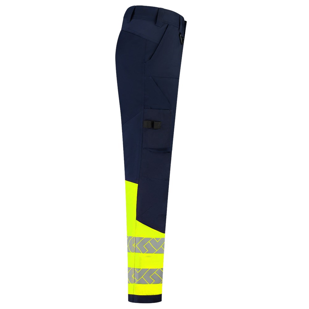 De Werkbroek Functional Stretch High Vis Redefined van Tricorp is jouw antwoord op werkcomfort, zichtbaarheid én duurzaamheid. Gemaakt van een stevige maar flexibele materiaalmix van 58% gerecycled polyester, 40% biologisch katoen en 2% elastaan, met een doekgewicht van 250 g/m2, biedt deze broek niet alleen een duurzame keuze, maar ook maximale bewegingsvrijheid. Dankzij strategisch geplaatste 4-way stretch panelen van 90% polyamide en 10% elastaan in het kruis en de knieholtes beweegt deze werkbroek soepel met je mee. Ook het verhoogde achterpand is ondersteund met 4-way stretch panelen, zodat de broek altijd perfect aansluit. De combinatie van 2-way stretch twill en ventilerende zones in de knieholtes zorgt voor optimaal comfort tijdens fysiek zwaar werk. Tevens zijn de slijtvaste Cordura® kniezakken, die in hoogte verstelbaar zijn, ideaal voor iedereen die regelmatig op z’n knieën werkt. Dankzij slimme details zoals een duimstokzak, smartphonezak met klep, dijbeenzak met volumeplooi én Cordura® verstevigingen op slijtgevoelige plekken, is deze werkbroek gemaakt voor actie. De verbeterde pasvorm en stevige ritssluiting zorgen ervoor dat je altijd klaar bent voor je klus. De broek is voorzien van afneembare D-ring en praktische riemlussen en is verkrijgbaar in 3 verschillende lengtematen. Daarnaast zorgen de gesegmenteerde reflectie rondom de pijpen, conform EN ISO 20471, waarbij deze normering behouden blijft tot wel 50 wasbeurten van 60 graden. Kortom, met deze werkbroek ben je niet alleen overdag, maar ook in het donker goed zichtbaar! Bovendien draag je met trots een broek die is gemaakt van gerecycled polyester en biologisch katoen, voorzien van zowel het OCS en GRS-label als het OEKO-TEX® Standard 100-certificaat. Dat betekent: veilig op de huid én aantoonbaar duurzaam geproduceerd. De Werkbroek Functional Stretch High Vis Redefined is leverbaar in de maten 42-66, 45-59 en 22-29 en de kleuren Ink-Fluor Orange en Ink-Fluor Yellow. Combineer deze broek met andere items uit de High Vis Redefined-lijn voor een complete, professionele en duurzame werkoutfit.