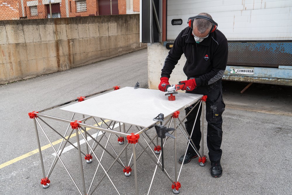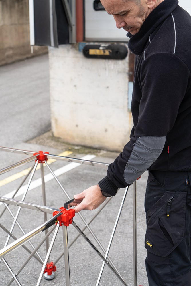 De RETRAC-TABLE inklapbare werktafel is een lichtgewicht, intrekbare structuur met een hoog draagvermogen.Deze tafel is ideaal voor wie een aanpasbare en toch duurzame werkruimte nodig heeft.Verkrijgbaar in twee modellen: 300 x 120 cm en 120 x 120 cm, beide met een werkhoogte van 75 cm. De optie 300 x 120 cm kan een gewicht tot 1.500 kg dragen en de optie 120 x 120 cm tot 700 kg.Hij is speciaal ontworpen om opgevouwen zeer weinig ruimte in beslag te nemen. Dit vergemakkelijkt niet alleen het opbergen in elke omgeving, maar maakt het transport ook eenvoudiger en dynamischer.Hij is uitgerust met wielen en een stevige draagtas om hem overal mee naartoe te nemen. Het montagegemak van de RETRAC-TABLE inklapbare werktafel is een van de opvallendste kenmerken. Je kunt de tafel bijna in een handomdraai zonder gereedschap monteren en demonteren, en dankzij de draadvoeten kan hij ook op moeilijke oppervlakken worden gebruikt.