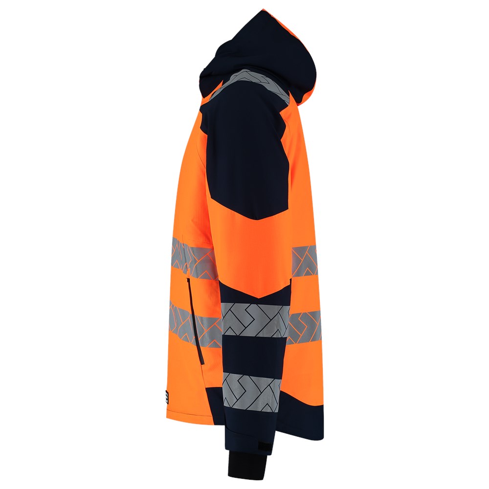 Deze Winterjas Ripstop High Vis Redefined van Tricorp is er voor professionals die alleen gaan voor het allerbeste. Gemaakt van 100% gerecycled polyester met een sterke ripstop-structuur en een doekgewicht van 200 g/m2, lichtgewicht Primaloft® voering en volledig water- én winddicht dankzij gelamineerde ritsen en gesealde naden. Deze winterjas is ademend, biedt bescherming tegen kou volgens EN 14058 klasse 3-3, én houdt je droog volgens EN 343 klasse 4-2. De hoge zichtbaarheid met een EN ISO 20471 klasse 3 normering maakt ‘m perfect voor wie buiten werkt bij weinig licht: denk aan bouwvakkers en infra professionals. Met een fleecekraag voor extra comfort, een verstelbaar koord in de taille, en een verlengd rugpand, sluit de Winterjas ripstop High Vis Redefined perfect aan op jouw lichaam. De waterdichte ritssluiting en de afsluitbare zij- en binnenzakken houden je spullen veilig en droog. Gesegmenteerde reflectie op torso, mouwen en schouders zorgt voor extra zichtbaarheid zonder in te leveren op bewegingsvrijheid. Naast topkwaliteit op het gebied van bescherming en comfort, kies je met dit product ook bewust voor duurzaamheid. Deze jas draagt niet alleen het GRS-keurmerk, maar ook het OEKO-TEX® 100-label ontbreekt niet. De Winterjas Ripstop High Vis Redefined is beschikbaar in een ruime maatrange van XS tot en met 5XL en in de kleuren Fluor Orange-Ink en Fluor Yellow-Ink. Combineer deze jas met andere items uit de High Vis Redefined-lijn voor een complete, professionele en duurzame werkoutfit.